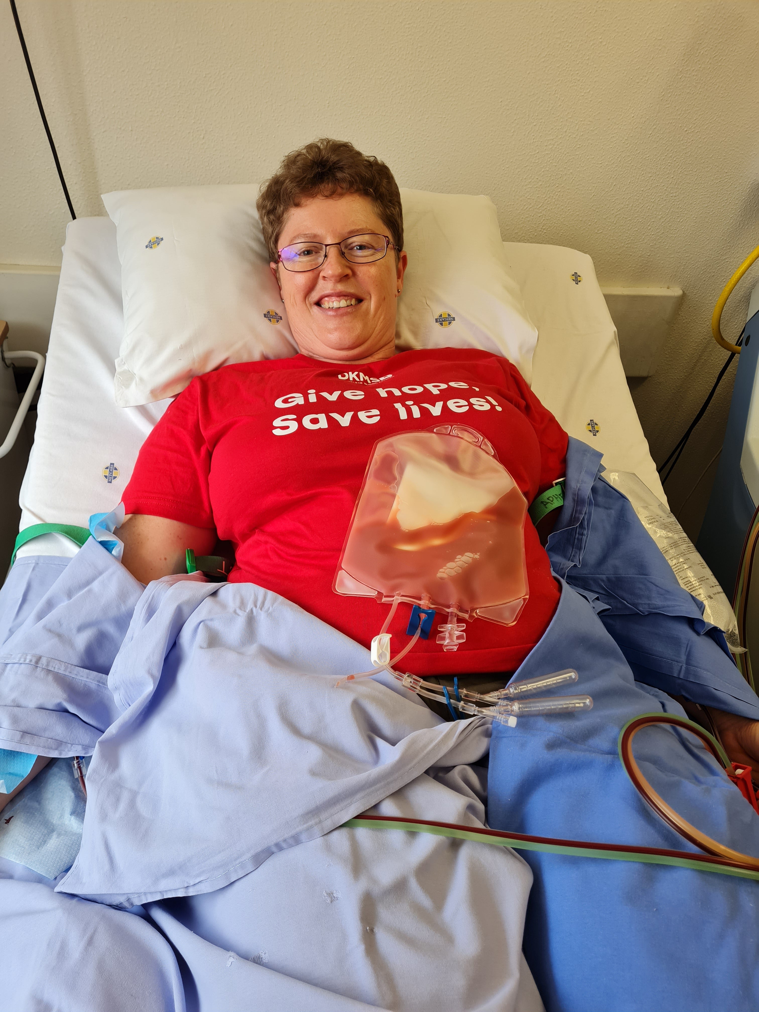 Knowing a previous donor had withdrawn, she worried she might not qualify; she was nearing 50, but according to Petro, everything went smoothly: “My thoughts were with the patient and what they were going through the entire time. I had light-headedness for a couple of hours after the Neupogen injections, but nothing that couldn’t be eased with over-the-counter pain medication. By day three, I felt 100% again.”